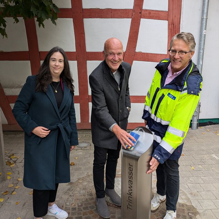 Wem es in der Hofheimer Innenstadt nach einem Schluck Wasser dürstet, der hat von nun an die Möglichkeit, den neuen Trinkwasserbrunnen am Kellereiplatz zu nutzen. Er steht nahe des Hof Ehry neben dem Durchgang zur Kirschgartenstraße. Hofheims Erster Stadtrat Daniel Philipp hat den Brunnen gemeinsam mit den Stadtwerken in Betrieb genommen. Der Vorschlag samt Beschluss dafür kam aus der Stadtverordnetenversammlung. Zur Aktivierung genügt es, die Hand etwas drei Sekunden vor den Sensor an der Seite des Brunnens zu halten.