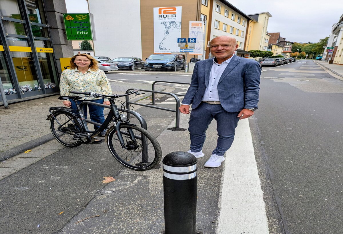 Die Kreisstadt Hofheim hat an zwei zentralen Standorten in der Innenstadt neue Maßnahmen für Barrierefreiheit und den Radverkehr umgesetzt. An der Kurhausstraße Ecke Hauptstraße wurde ein dringend benötigter Behindertenparkplatz eingerichtet; außerdem stehen dort nun drei neue Fahrradständer zur Verfügung. Auch an der Postfiliale in der Wilhelmstraße wurden drei zusätzliche Fahrradständer installiert.