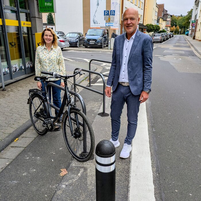 Die Kreisstadt Hofheim hat an zwei zentralen Standorten in der Innenstadt neue Maßnahmen für Barrierefreiheit und den Radverkehr umgesetzt. An der Kurhausstraße Ecke Hauptstraße wurde ein dringend benötigter Behindertenparkplatz eingerichtet; außerdem stehen dort nun drei neue Fahrradständer zur Verfügung. Auch an der Postfiliale in der Wilhelmstraße wurden drei zusätzliche Fahrradständer installiert.